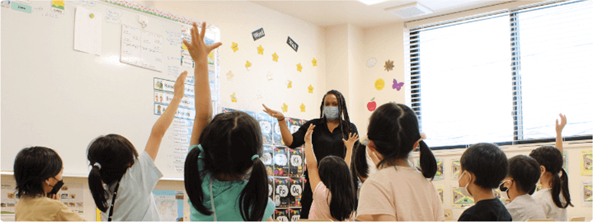 当スクールには、英語を母国語とし2年以上の教育経験を持つ多国籍の教師陣が在籍。本場の発音や文化に触れられる環境です。さらに、年2回以上の研修とトレーナーによる日頃からのサポートを通じて、教師とレッスンの質を維持・向上し続けることに努めています。ただ英語を教えるだけでなく、一人ひとりの個性を大切にしながら、子どもが自分らしく成長できる指導にこだわっています。