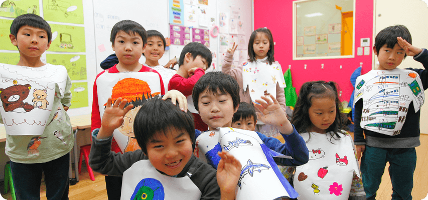 楽しさと学びの両面にアプローチするプログラムで、英語を身近に感じる気持ちや探究心を育みます。年中・年長では、体感的なアクティビティを通して創造力、自己表現力の基礎を養いながら、英語に親しんでいきます。