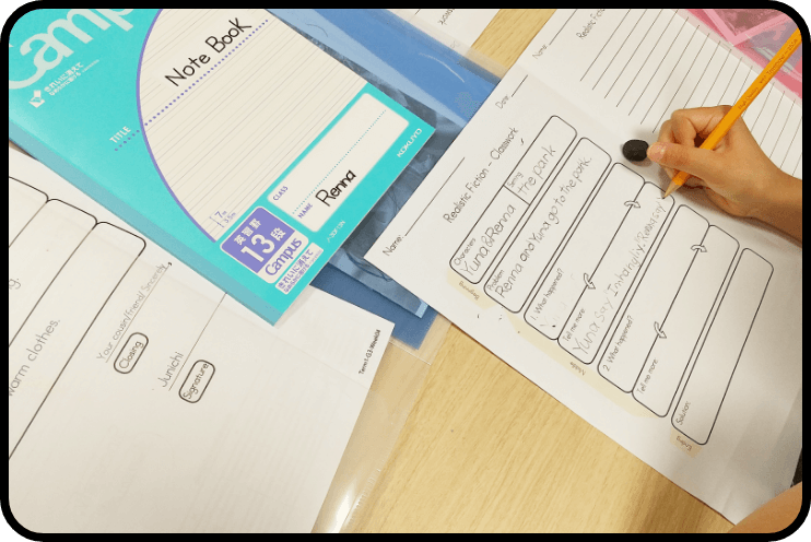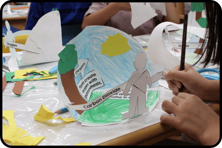 また、より発展的な探究型プログラムの授業の中で、考える力、表現する力を身につけます。 3・4年生からは宿題がでるようになります。宿題をこなしながら、より高い英語力と表現力を育てます。